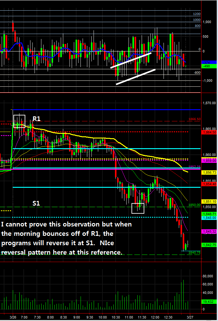 Initial balance basing action never did pick up buying hitchhikers. And the subsequent, predominately below VWAP, price action, triggered a triangle breakout dump lower at 10:30. Usually it's 11:00 for a programmed dump lower like this.